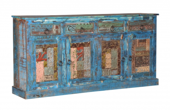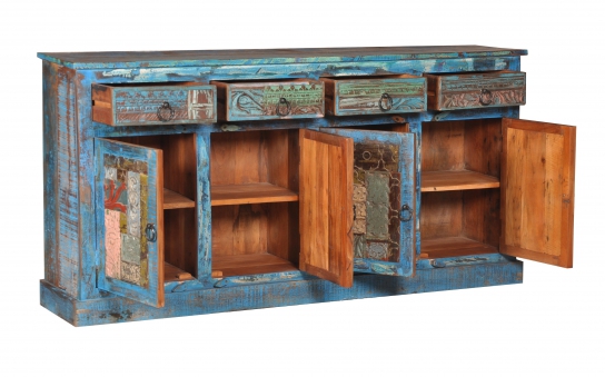 Vintage Möbel Sideboard aus massivem Altholz mit 4 Türen und 4 Schubladen